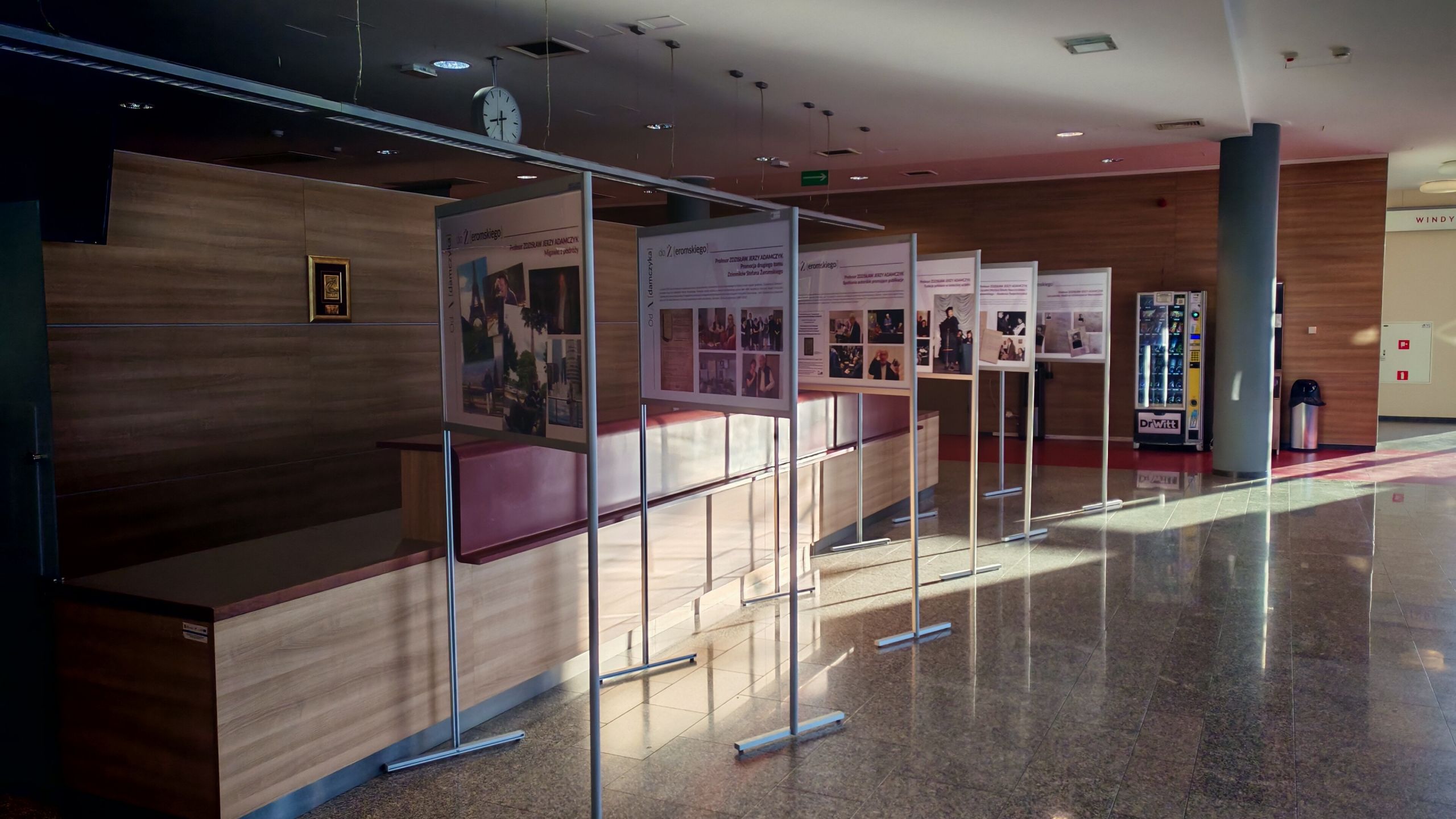Plansze i gabloty wystawy pod tytułem Od Adamczyka do Żeromskiego