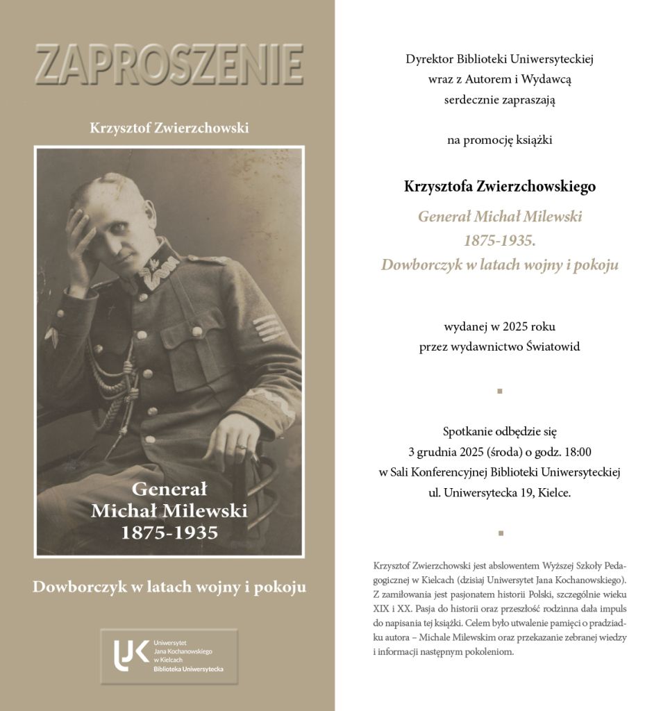 Krzysztof Zwierzchowski jest absolwentem dawnej Wyższej Szkoły Pedagogicznej w Kielcach (obecnie Uniwersytet Jana Kochanowskiego) i pasjonatem historii Polski, ze szczególnym uwzględnieniem dziejów XIX wieku oraz II Rzeczypospolitej. Impulsem do napisania książki była rodzinna pamięć o generale Milewskim oraz potrzeba utrwalenia jego losów i przekazania zgromadzonej wiedzy następnym pokoleniom.